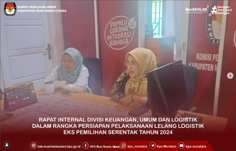KPU Musi Rawas Utara melaksanakan Rapat Internal Subbagian Keuangan, Umum, dan Logistik dalam rangka persiapan pelaksanaan lelang Logistik Eks Pemilihan Serentak Tahun 2024 pada Selasa, 16 September 2025.