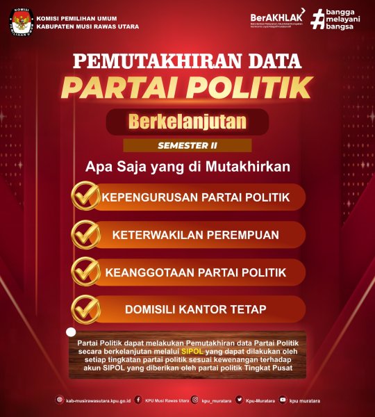 Untuk informasi lebih lengkap terkait pemuktahiran data partai politik, silahkan hubungi nomor kontak operator yang ada pada info grafis di bawah ini.