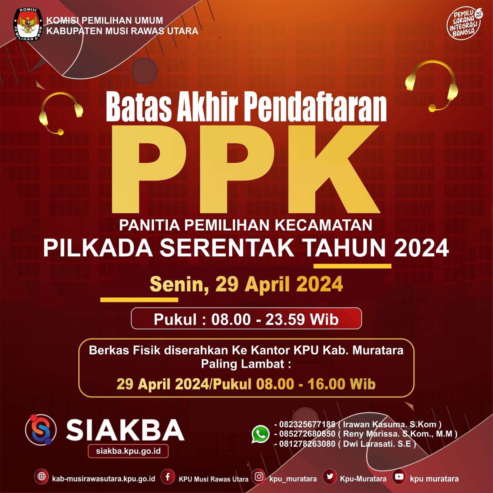 #TemanPemilih, Berikut disampaikan bahwa hari ini merupakan hari terakhir penerimaan pendaftaran Panitia Pemilihan Kecamatan pada Pemilu 2024