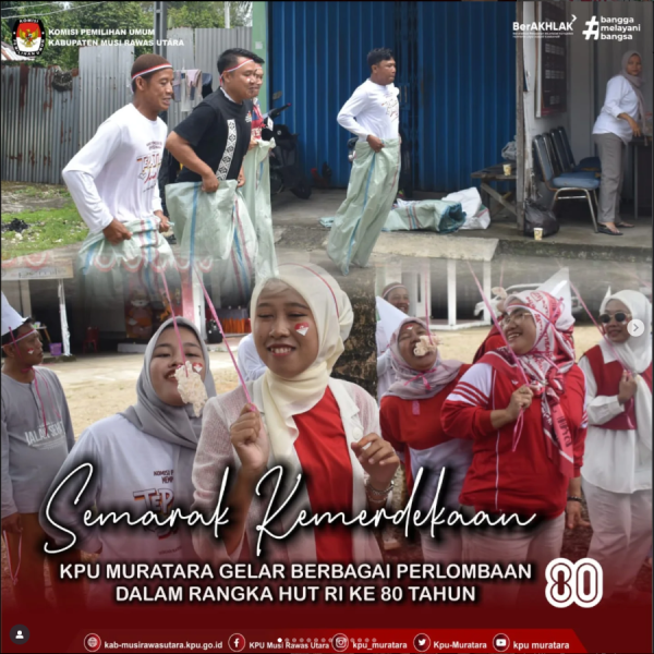 KPU Kabupaten Musi Rawas Utara ikut menyemarakkan suasana Hari Kemerdekaan Republik Indonesia ke-80 dengan cara mengadakan perlombaan khas memperingati Hari Kemerdekaan di bulan Agustus.