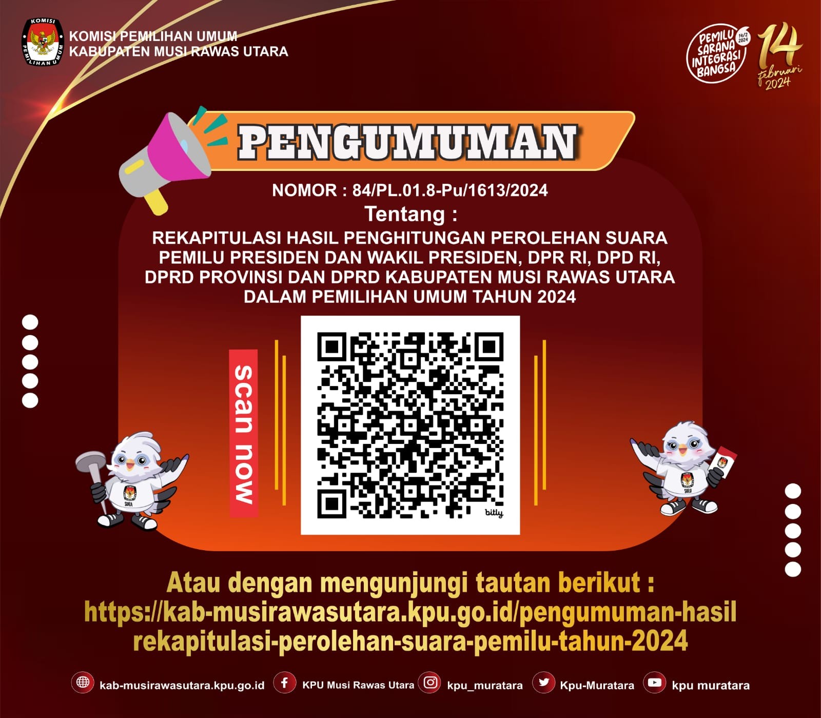 PENGUMUMAN KEPUTUSAN REKAPITULASI HASI LEPNGHITUNGAN SUARA PEMILIHAN ANGGOTA DPRD KABUPATEN MUSI RAWAS UTARA