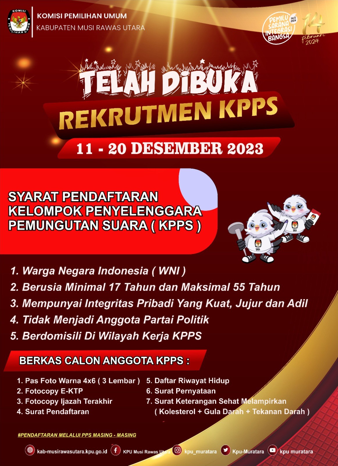Pengumuman Perekrutan KPPS se-Kabupaten Musi Rawas Utara pada Pemilu 2024