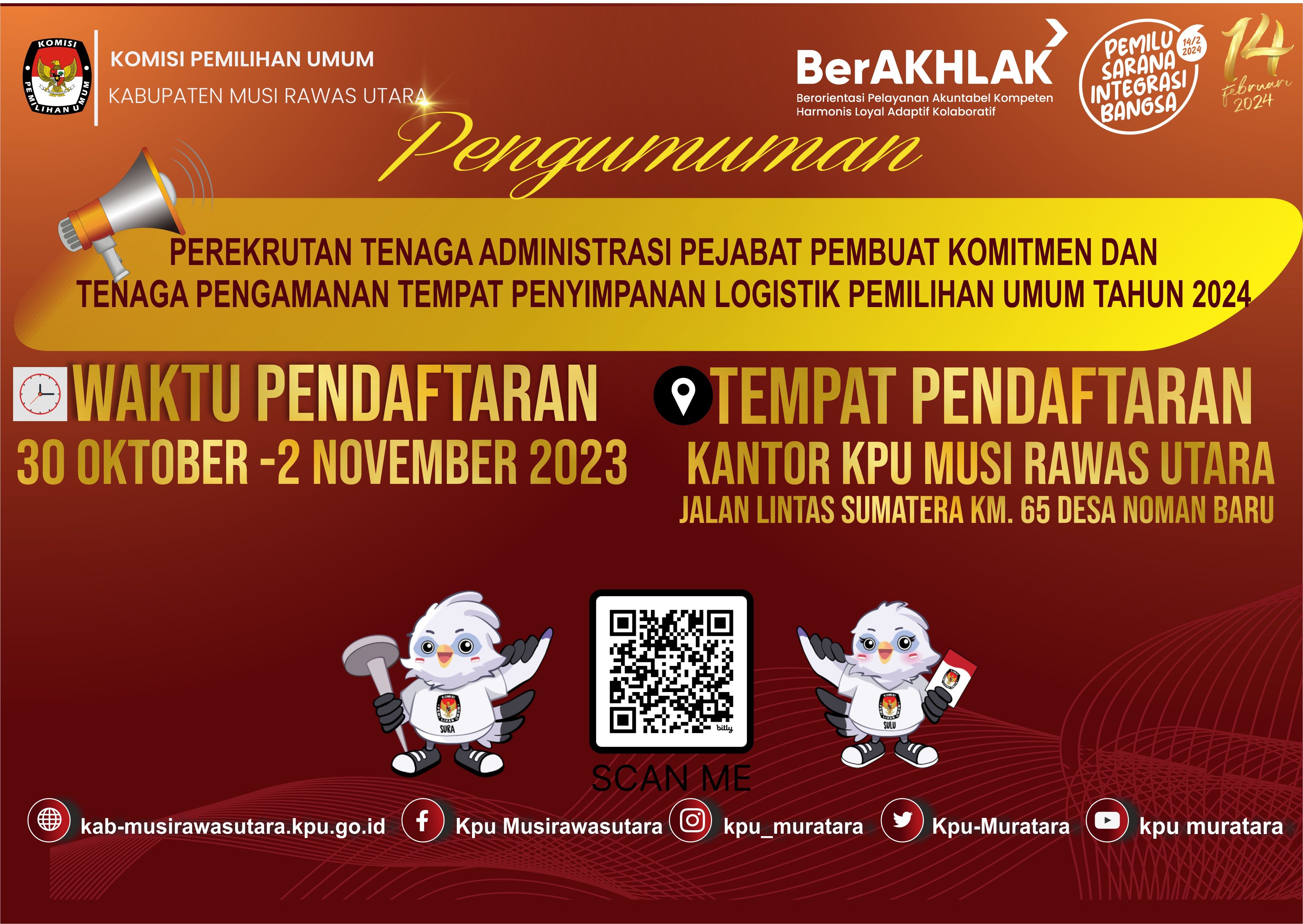 Pengumuman Perekrutan Tenaga Adminsitrasi Pejabat Pembuat Komitmen dan Tenaga Pengamanan Tempat Penyimpanan Logistik KPU Musi Rawas Utara Pada Pemilu 2024