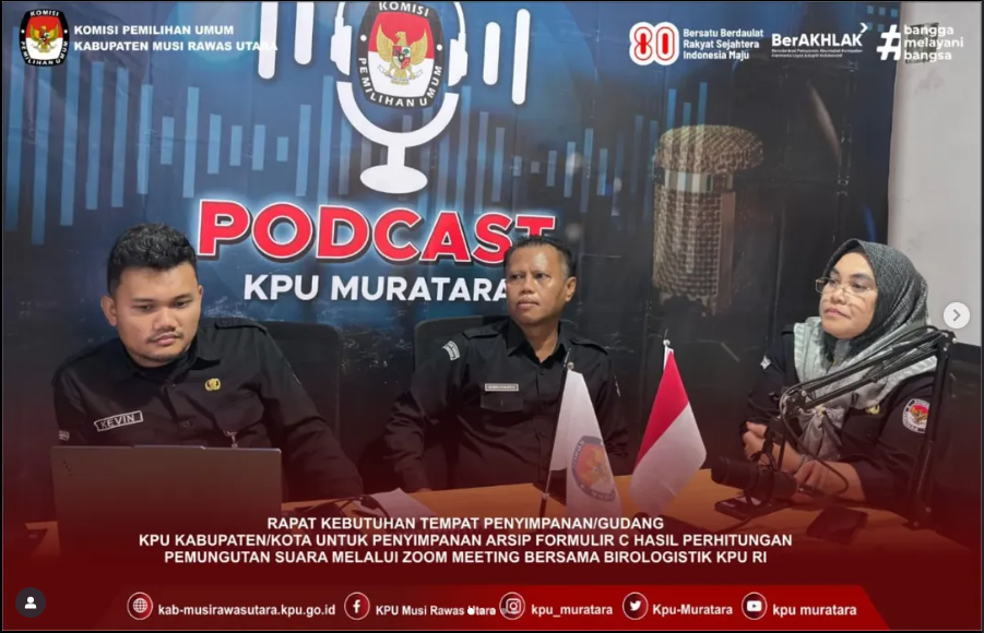 Sekretaris KPU Kabupaten Musi Rawas Utara Ibu Syamsiah, SH, MH didampingi Kasubag KUL Bapak Asmulyanto dan Staf Kevin Prima Yudha mengikuti Rapat Koordinasi Kebutuhan Tempat Penyimpanan Arsip Formulir C-Hasil Penghitungan Suara pada Pemilu dan Pemilihan melalui Zoom Meeting Bersama Biro Logistik KPU RI Pada Rabu, 13 Agustus 2025.