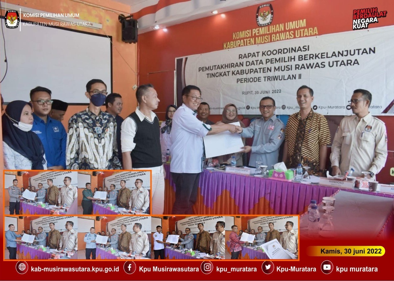 Kamis 30 Juni 2022, KPU Musi Rawas Utara melaksanakan Rapat Koordinasi Pemuktahiran Data Pemilih Berkelanjutan ( PDPB) tingkat Kabupaten Perideo Triwulan II